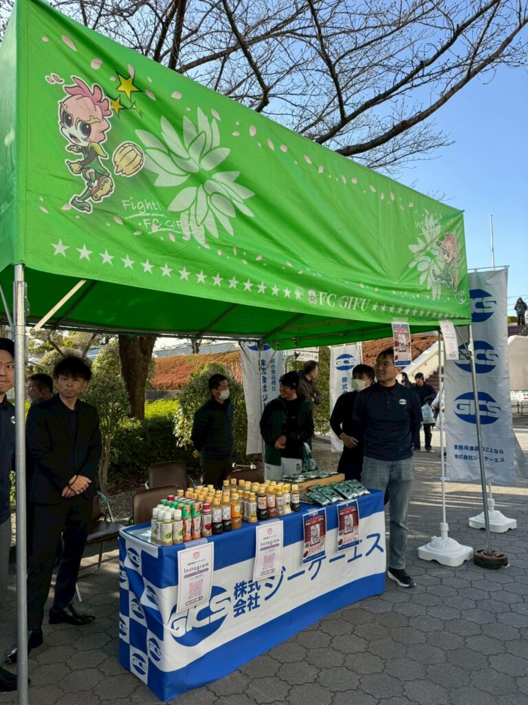 FC岐阜スポンサーとして GKSサンクスマッチ開催しました。当日は弊社のインスタをフォローしていただけたサポーターへドレッシングをプレゼント!大変好評で、たくさんの方へ弊社のPRをすることだできました、また弊社オリジナルカレーも販売、こちらもたいへん好評でした。サポーターの皆様と協力してFC岐阜の応援と地元に貢献できる会社を目指します、これからも情報の発信を頑張っていきますのでよろしくお願いします。